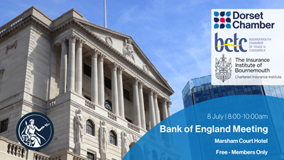 Join Dorset Chamber, Bournemouth Chamber, and the Insurance Institute of Bournemouth for this expert insight into the economy and issues facing businesses with Andrew Holder, Agent for Central Southern England for the Bank of England.