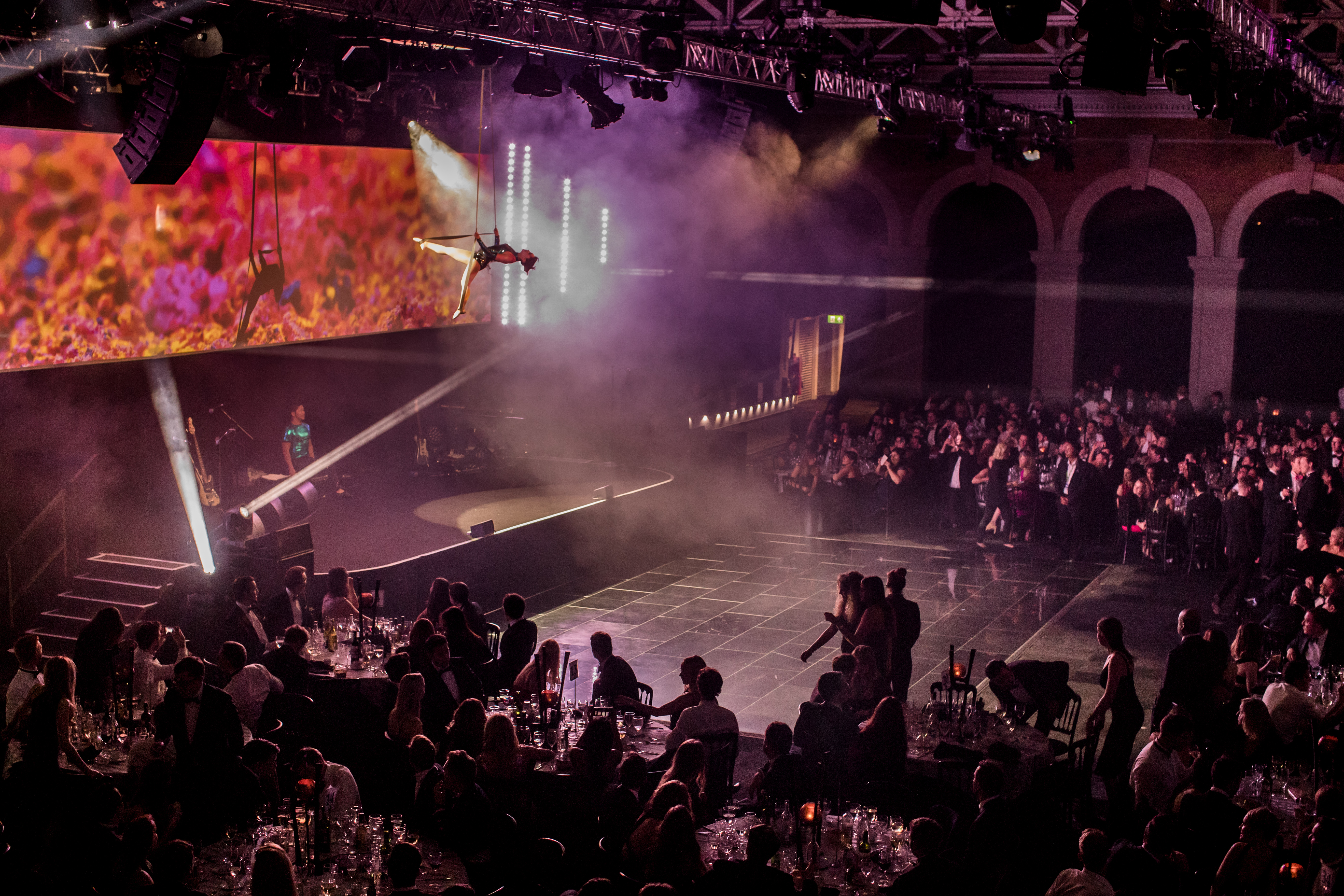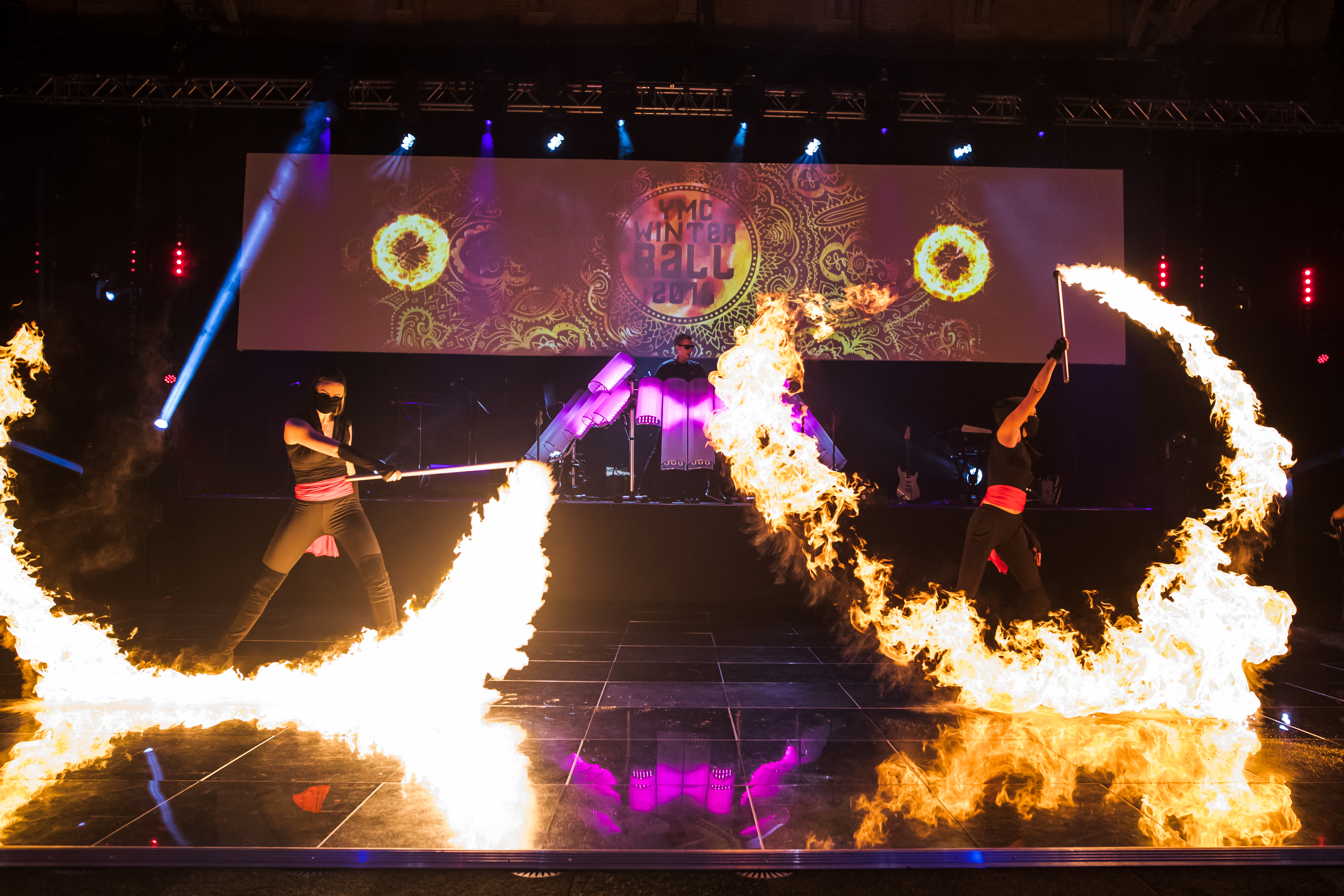 The spectacular Old Billingsgate provided an awe inspiring setting for the YMC's 'mash up' - think bright, loud and bold! The evening kicked off with a sensational performance by renowned DJ-drummer AFISHAL who lit up the stage (and our huge 40ft screen!) using his high-tech drumming rig...and his 'ninja' fire dancers! Guests were also treated to a high octane aerial performance by the gravity-defying Boldo and Gemma. The fun continued after dinner with live music from Sway Band, our inflatable photo booths and DJ!