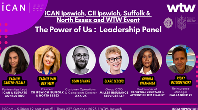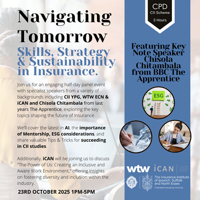 Join us for an engaging half-day panel event with specialist speakers from a variety of backgrounds including CII YPG, WTW ECN & iCAN, exploring the key topics shaping the future of insurance.