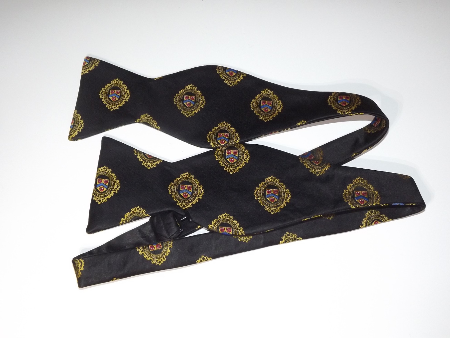 A stylish black Bowtie featuring the SII logo in gold, with blue and red detail.An adjustable woven silk blend bowtie.